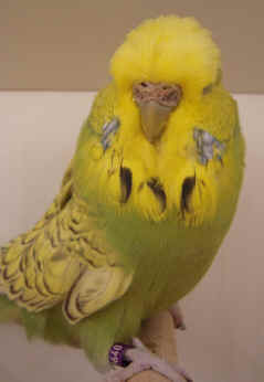 Norma Phillips judged the 60 Crests and awarded the adult C.C. and Best Crest in Show to a Circular Cinnamon Dark Green cock bred by Gren & Pat Norris. The bird had good condition and size with good neat crest and stood well throughout judging. Alan & Gina Adams benched a powerful Tufted Spangle Opaline Cinnamon Grey Green cock in second place while the novice partnership of Paul Cheatley & Terry Alcorn benched a Circular Dominant Pied Grey cock in third place that stood well and was well balanced. Cheatley & Alcorn also benched the best any age opposite sex award with a Circular hen. Grant Findlay & Nick Flavell won the young bird award with a stylish Tufted Light Green cock, staged in good condition and a good example of the variety. The Cheatley & Alcorn partnership occupied the next two places with quality Circular Skyblue cock and Circular Cinnamon Cobalt hen. Best junior any age award went to Gary Cameron. |